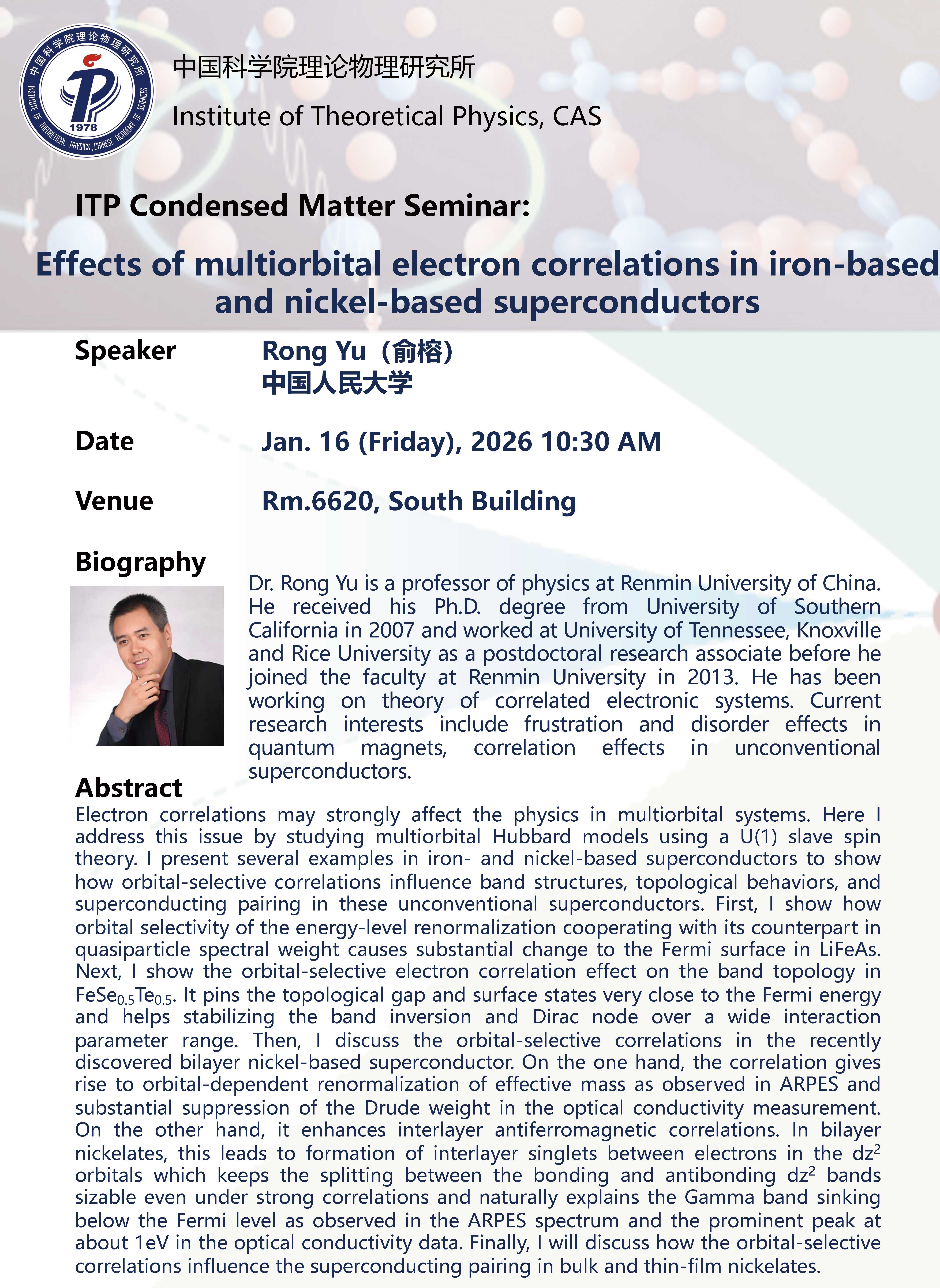 - Speaker Rong Yu (Renmin University of China)